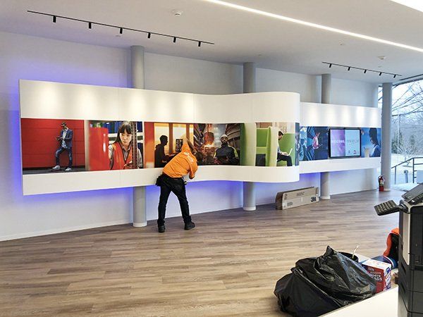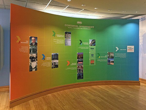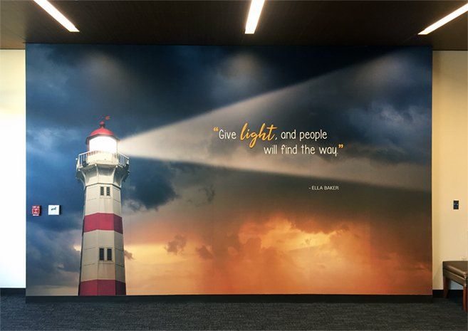 Wall wraps/murals are a perfect way to add information/excitement to any indoor area. Vinyl wraps are available with low-tack adhesives (making removal easy and non-damaging to painted surfaces) or permanent for long-term use. Corporate areas, retail walls, pediatric healthcare, elevators and stairs are just a few examples of ways this advertising medium can be utilized.